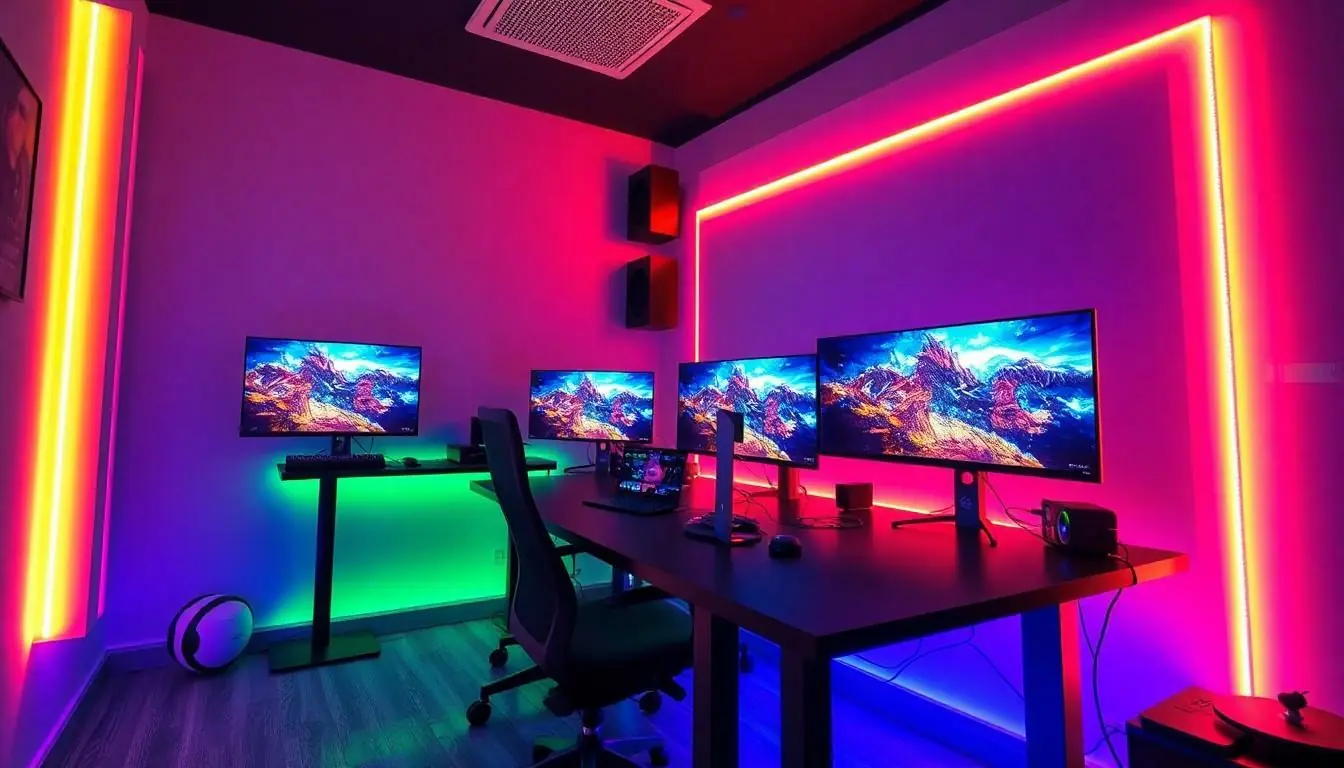 LED lighting transforms any gaming space into a vibrant environment. RGB strips can be placed along walls or behind desks for customizable color schemes. Adaptive lighting reacts to in-game events, creating a dynamic atmosphere that enhances immersion. Consider smart bulbs and light panels which sync with gameplay for added effect. Control options through smartphone apps or voice commands improve convenience and customization, making lighting a crucial aspect of the overall aesthetic.